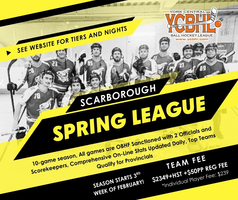 We accept individual registration. Please register by clicking here Fee is $239 tax included. We will put individuals on the free agent list to be placed or create a new team. Individuals will be placed as follows: